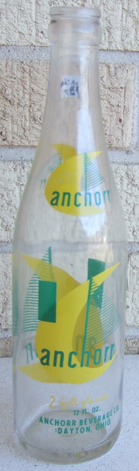anchorr /2 full glasses and 12 FLD OZ./ANCHORR BEVERAGE CO./:DAYTON, OHIO near the base.