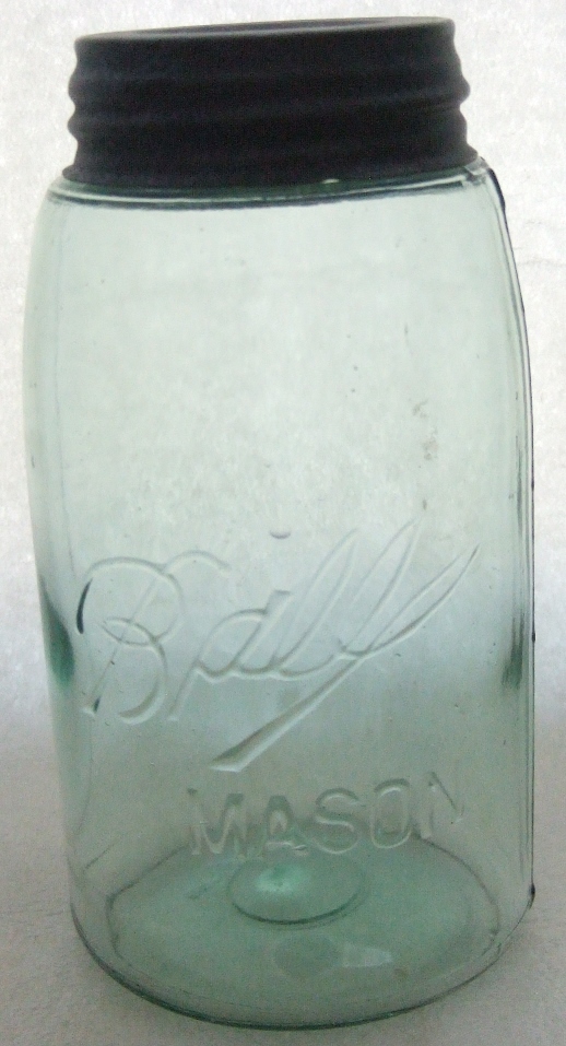 This light apple green quart sized jar is in perfect condition with its original Ball (script) lid.