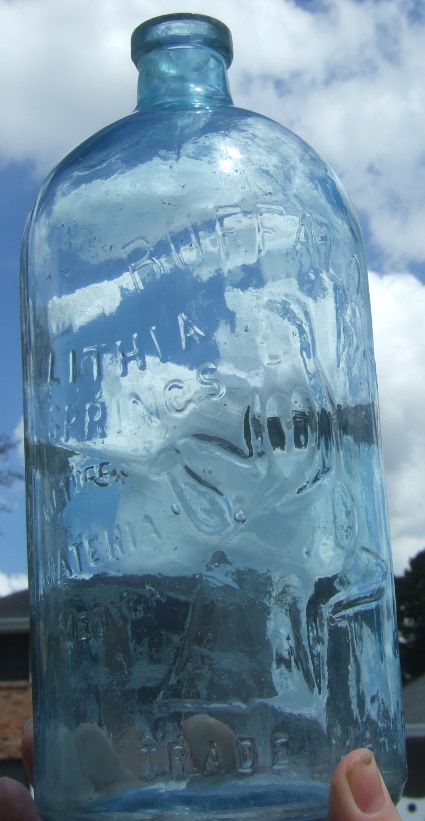 Embossed: BUFFALO (in arch) / LITHIA / SPRINGS/ Woman seated with a pitcher / WATER / NATURES / MATERIA / MEDICA / TRADE MARK PAT.