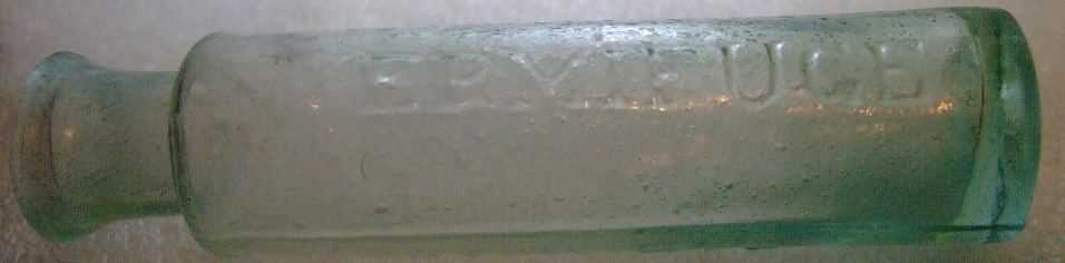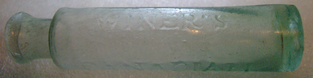 Embossed: WINER'S / CANADIAN / VERMIFUGE. This vermifuge is 3 15/16” tall, near mint with a slight cloudy area at the shoulder. It has an inward rolled lip and has an open pontil. This one is far above average with thousands of tiny bubbles throughout this bottle.